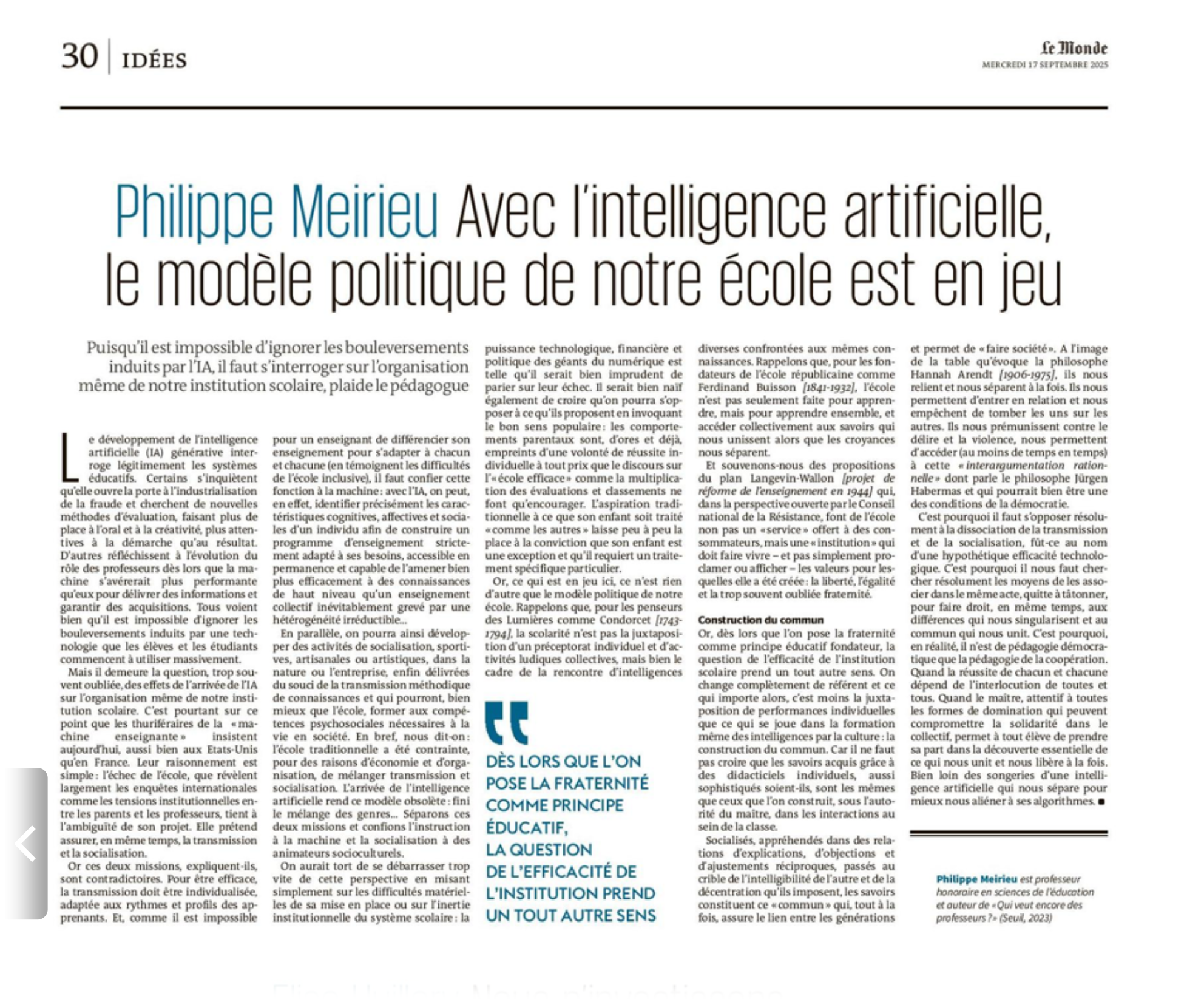 Chronique de Philippe Meirieu, sur le Café pédagogique du 19 septembre 2014 : "Du bon usage des innovations" |
